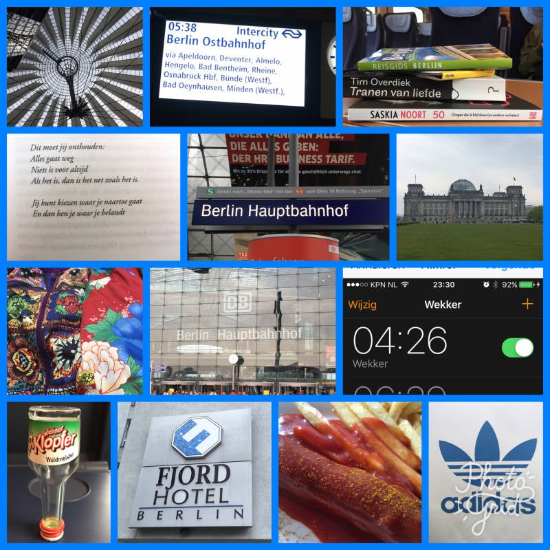Een fijn Hotel, en toen Berlijn in, natuurlijk eerst een curryworst... en rondgelopen, gekeken. Plannen gemaakt voor de dagen erna. Hop on, hop off bus genomen, zodat we veel konden zien, lekker uit eten.... prosecco & witte wijn... Goed weer, oke, ook beetje regen, mocht de pret niet drukken... Maandagmiddag weer terug. Wel lekker een taxi genomen naar de Hauptbahnhoff... Was eigenlijk een dag te kort... nou ja, gaan we gewoon nog een keer, maar er staan nog meer leuke steden op t lijstje.