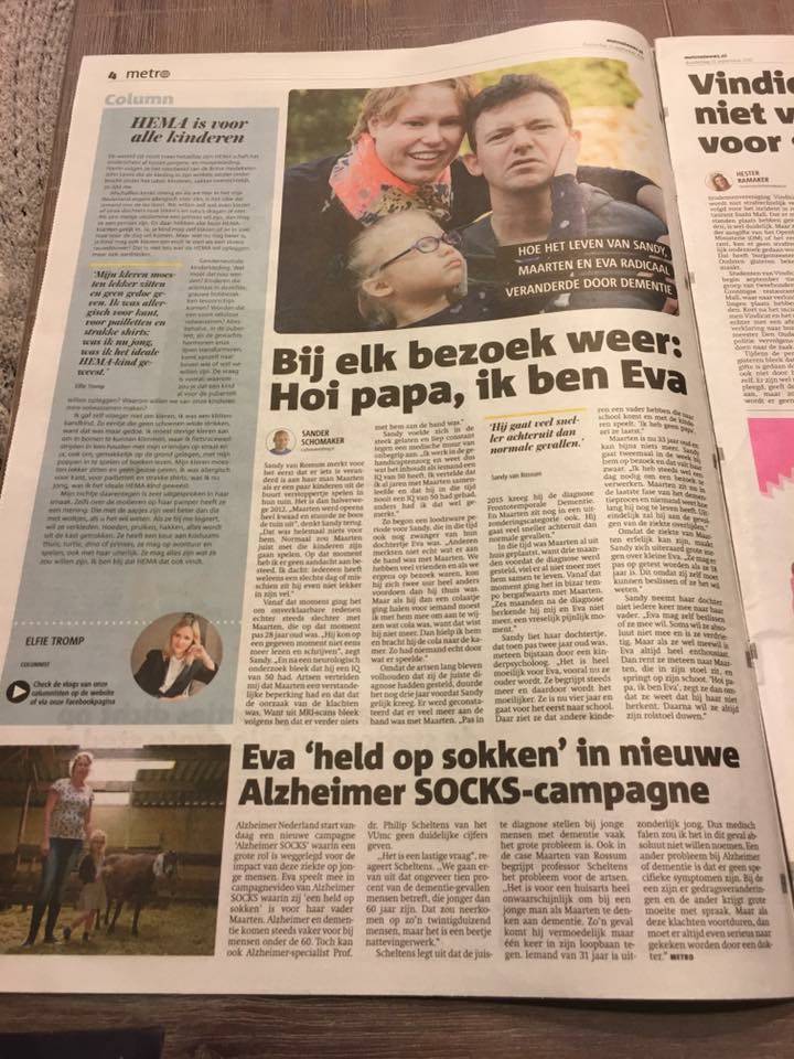 Ook staat ze vandaag in de METRO met een artikel. Kanjers zijn het! Awareness....