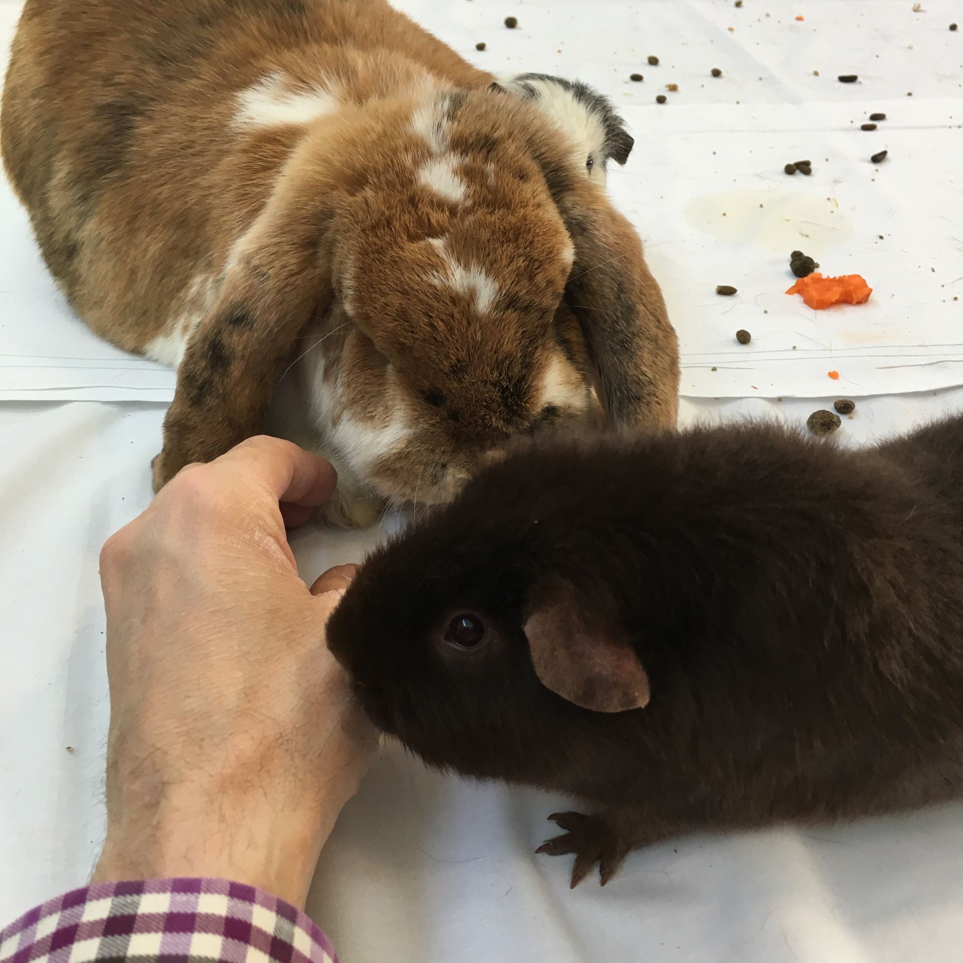 Ze vertelden ook dat ze wel eens kippen meenemen, wat dan helemaal hilarisch is... want die gaan niet relaxed liggen, zoals de konijnen.. alleen mogen de kippen op dit moment niet uit het hok. Maar zou het wel een keer willen meemaken als ze weer naar buiten mogen.